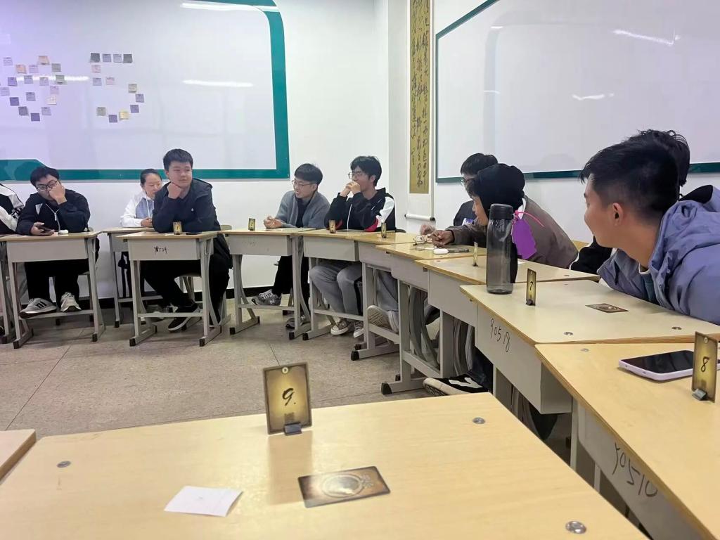 才艺展示后,趣味互动环节正式开启。“名字接龙” 游戏中,同学们需依次说出前一位同学的名字,答不上来则分享自身特点或爱好作为 “小惩罚”。大家认真倾听、努力记忆,在偶尔的小失误中笑声不断,陌生感悄然消散,彼此的基本信息也快速印入脑海。而“狼人杀”游戏更是将活动推向高潮,同学们随机分配角色,在发言推理、合作投票中,无论是“狼人”的巧妙伪装,还是“好人”阵营的细致分析,都让大家深度参与,既锻炼了逻辑思维,更在对抗与协作中加深了同窗情谊。